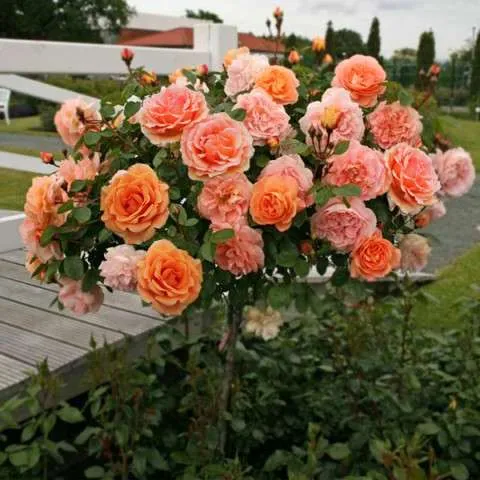 Троянда на штамбі Ашрам – це не просто рослина, а витвір садового мистецтва. Вона стане ефектним акцентом у центрі клумби, на парадній ділянці або біля входу до будинку. Її теплі відтінки гармонійно поєднуються з білими, бордовими чи фіолетовими трояндами.